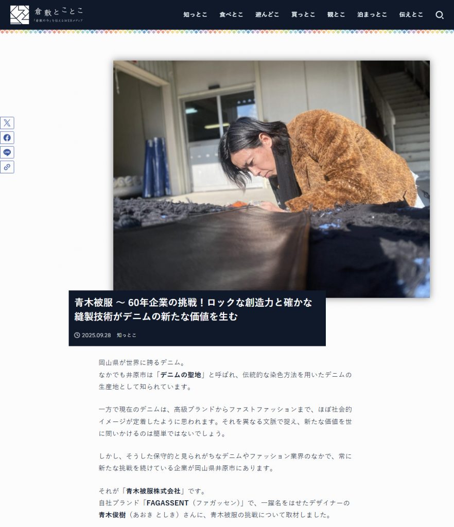 倉敷の今を伝えるWEBメディア「倉敷とことこ」に青木被服が掲載されました
